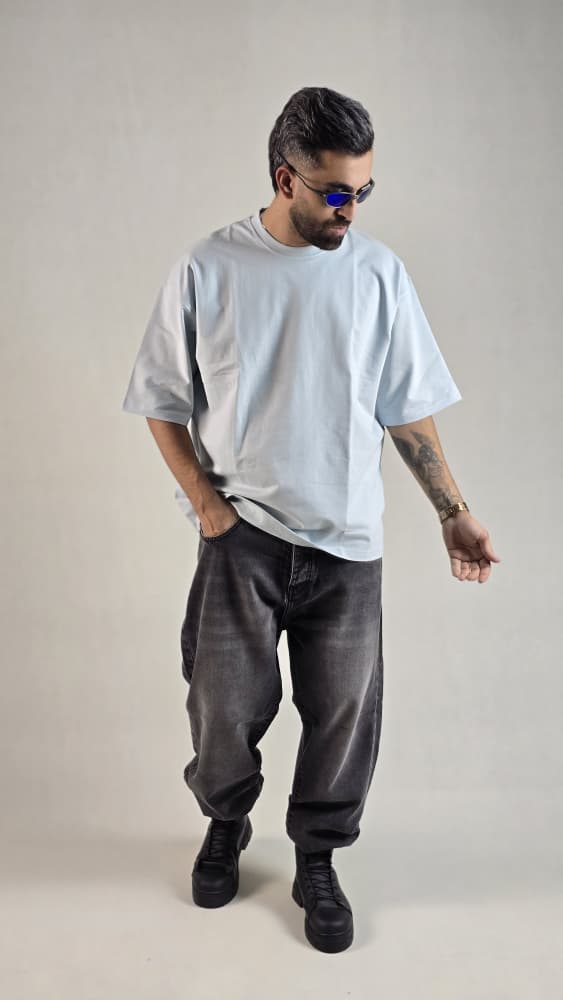 تیشرت باکسی مچینست آبی آسمانی کد 147