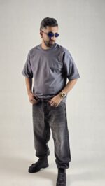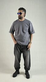 تیشرت باکسی مچینست طوسی تیره کد 154