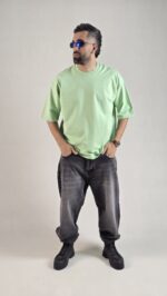 تیشرت باکسی مچینست سبز فسفری کد 151